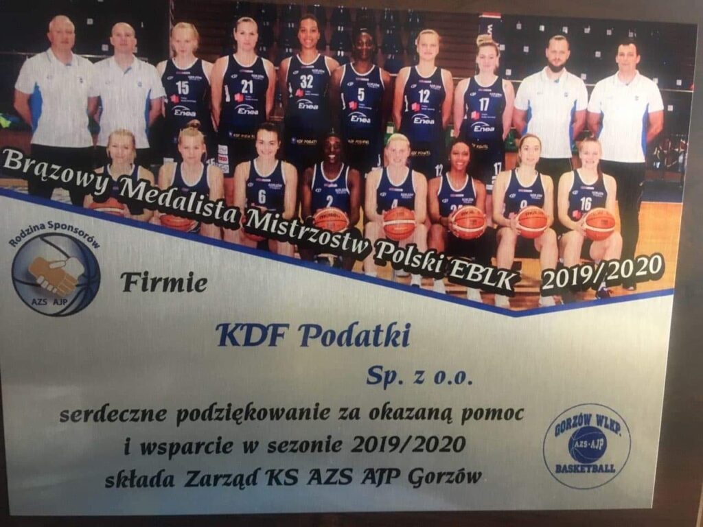 Uprzejmie chcemy poinformować, że nasza firma KDF-Podatki otrzymała podziękowanie od drużyny koszykarskiej oraz Zarządu KS AZS AJP Gorzów, za okazaną pomoc oraz wsparcie w sezonie 2019/2020.